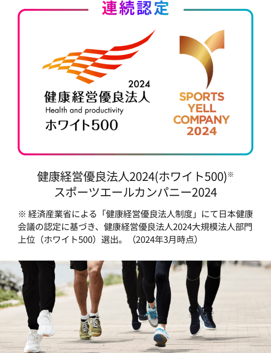 従業員が「明るく・楽しく・元気よく」働き、幸せに暮らせるよう、各種健康推進施策でサポートしています。